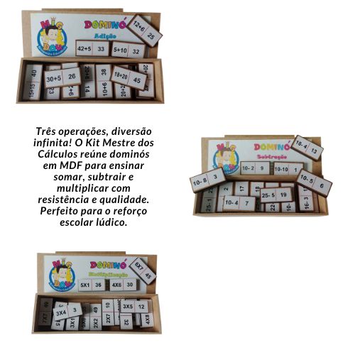 A Migdou Brinquedos desenvolveu o Kit Mestre dos Cálculos 3 em 1 para tornar o aprendizado dos números muito mais leve. Este conjunto exclusivo reúne três jogos de dominó em MDF focados em adição, subtração e multiplicação. Nós criamos cada peça para transformar as operações básicas em um desafio tátil e visual empolgante. As crianças aprendem a calcular enquanto se divertem com a família ou amigos longe das telas.