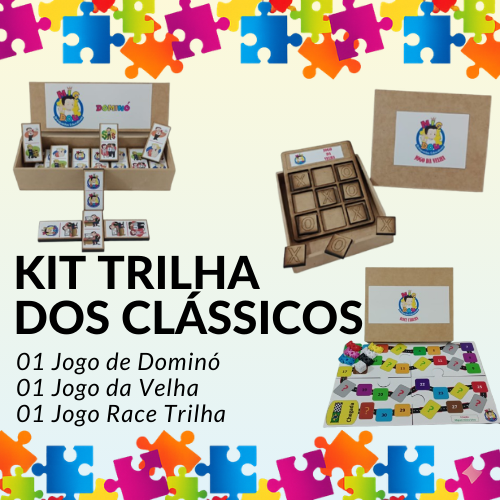 Três vezes mais diversão e aprendizado! O Kit Trilha dos Clássicos une os melhores jogos de estratégia da Migdou em MDF. Ideal para desenvolver a lógica e a socialização longe das telas.